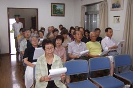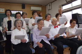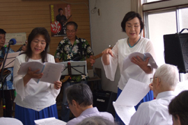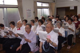 今回は佐伯さんのアコーディオンの演奏にあわせて、二曲も合唱することができました。本当に好い想い出と記念になりました。