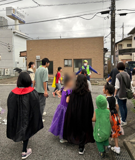 子ども会とまちを守る会のイベントで、ハロウィンパトロールが行われました。